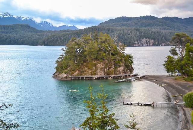 We leave early in the morning, going by the 40 National Route, travelling 115 km. of lush forest, rivers of clear water and the lakes: Machónico, Falkner, Villarino, Escondido, Correntoso, Espejo and Nahuel Huapi.