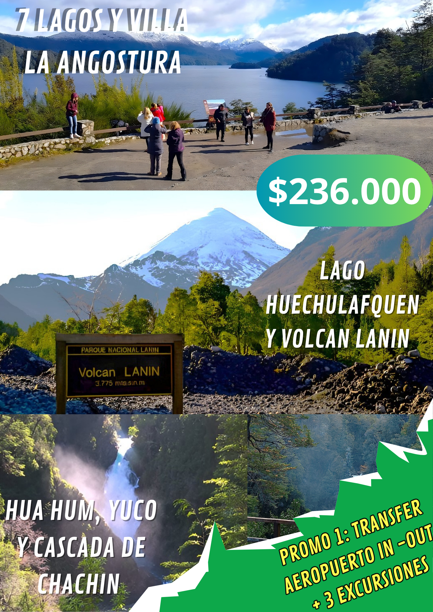 Es una de las visitas más características del Parque Nacional Lanín, que lleva hasta la base misma del Volcán homónimo. Bordeando el Río Chimehuín, uno de los más conocidos del mundo como lugar de pesca de truchas estilo mosca (fly casting), se llega al lago más grande del Parque, el Huechulafquen, recorriéndolo en toda su longitud, con sus aguas azules y su impactante oleaje.Previo a llegar al lago haremos una visita a Junín de los Andes, para recorrer el centro con su Iglesia y el paseo artesanal, tomando un primer contacto con el acervo cultural mapuche.