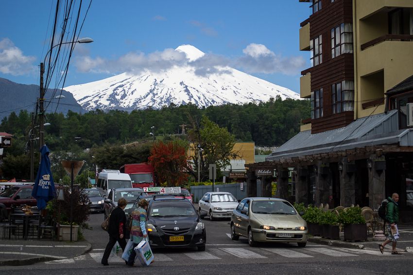 Pucón, es un centro turístico, de nivel internacional, ubicado a orillas del Lago Villarrica y casi al pie del Volcán Villarrica, con su fumarola constante. Podremos disfrutar de aguas límpidas y hermosas playas, del paseo municipal de artesanías, con los típicos puestos de flores de madera, de sus comidas típicas -los mariscos-, visitando cada rincón de una de las localidades más agradables y pintorescas de Chile.